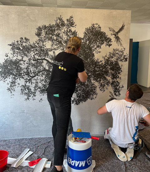 Luft innerhalb von Gebäuden kann bis zu fünfmal stärker verschmutzt sein als die Außenluft. Das liegt daran, dass Einrichtungsgegenstände kontinuierlich kleine Mengen chemischer Stoffe absondern. Durch die Verwendung von Farben die den GREENGUARD Gold-Standard (UL 2821 Test Methode) erfüllen, leisten wir unseren Beitrag zu einer besseren Raumluft, da unsere Farben in besonders geringem Maße Stoffe an die Umgebung abgeben. Damit steht auch dem Wallcovering-Projekt im Schlaf- sowie im Kinderzimmer nichts im Wege.